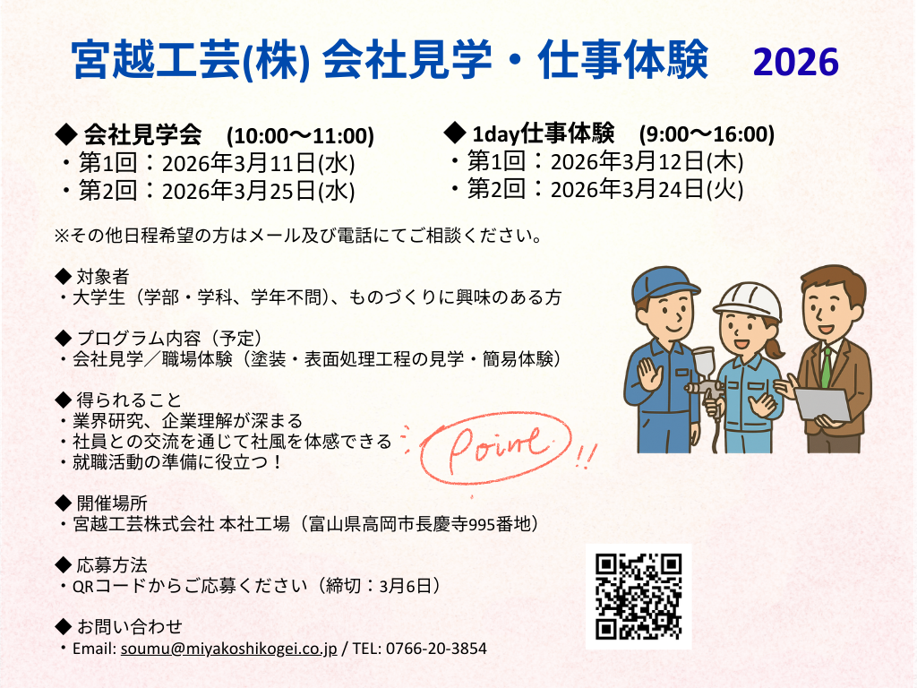 当社では、2026年3月に大学生を対象とした会社見学・仕事体験会を開催します✨